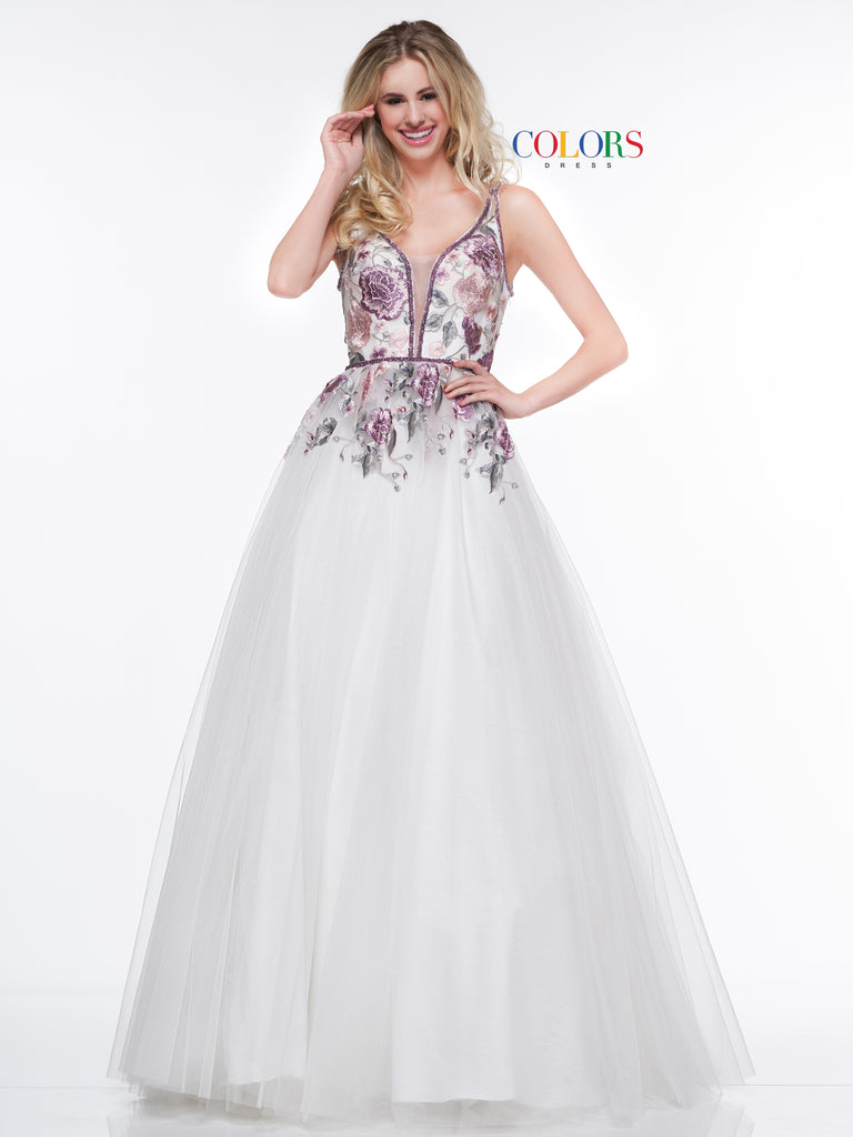 This gorgeous netted ballgown with embroidered floral detailing is perfect for that fairy tale occasion.