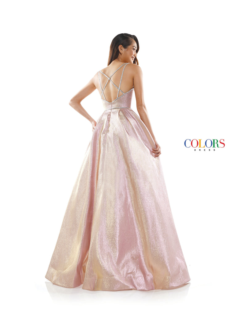 This beautiful glitter ballgown has stunning embellished detailing and even has handy hidden pockets! Perfect for junior pageants or proms!