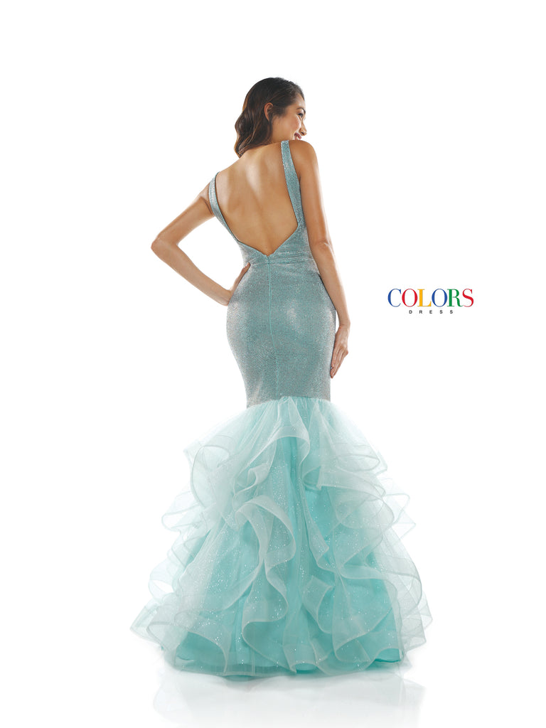 This glam fishtail is embellished with crystals and features a glittery ruffled skirt, perfect for the stage or prom!