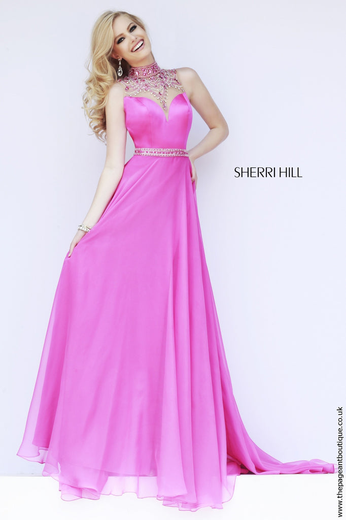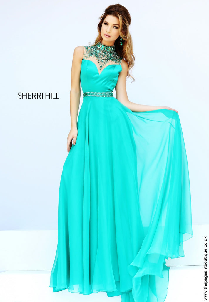 A high neck gown with impeccable illusion beading and a satin sweetheart bodice. Be the envy of the ball.