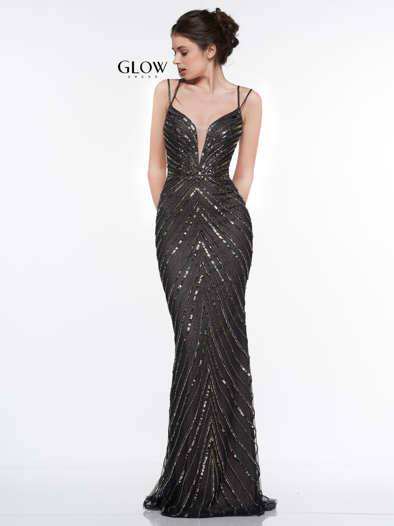 This stunning wrap skirted dress by Colors Dress features off the shoulder beaded sleeves and a sweetheart neckline.