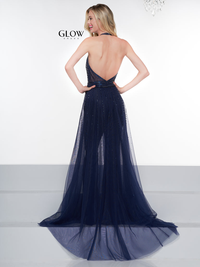 We are loving jumpsuits for Prom 2019! This sassy wide leg jumpsuit has an embellished bodice, halterneck straps and a low back. A netted removable over-skirt makes this perfect for pageant fashion wear!