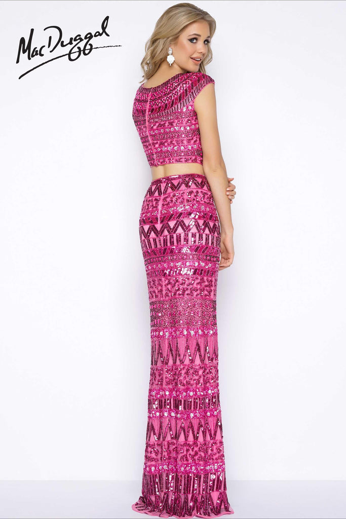 A stunning sequin two piece from Mac Duggals 2017 collection. This dress features a cap sleeved crop top and matching floor length skirt, wear together or separately!