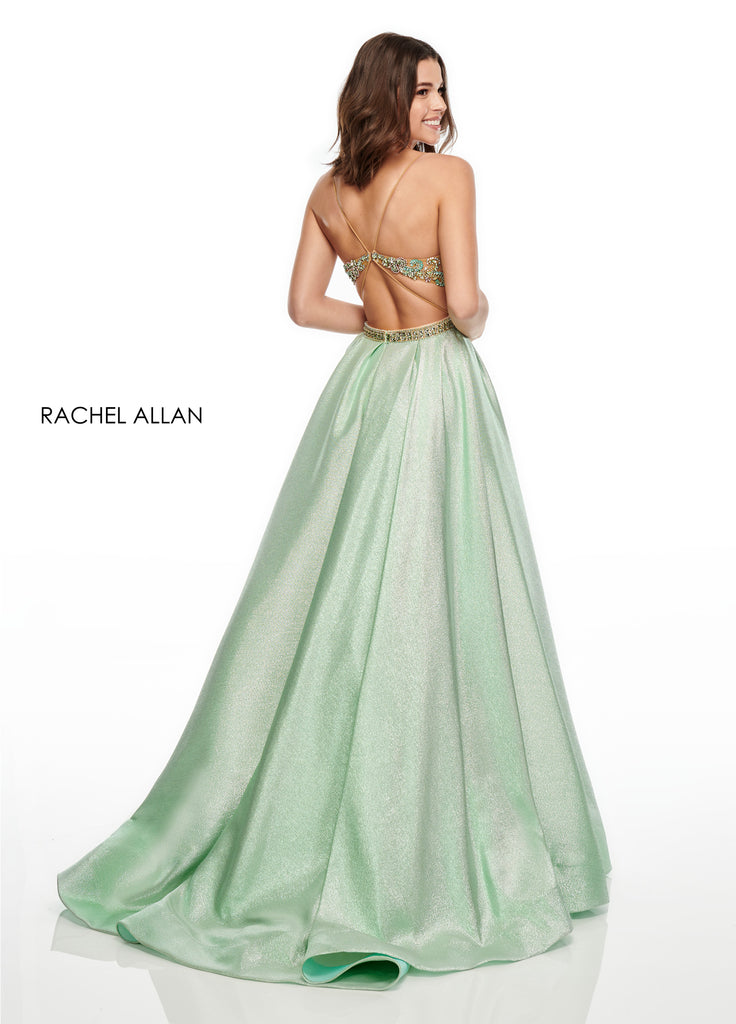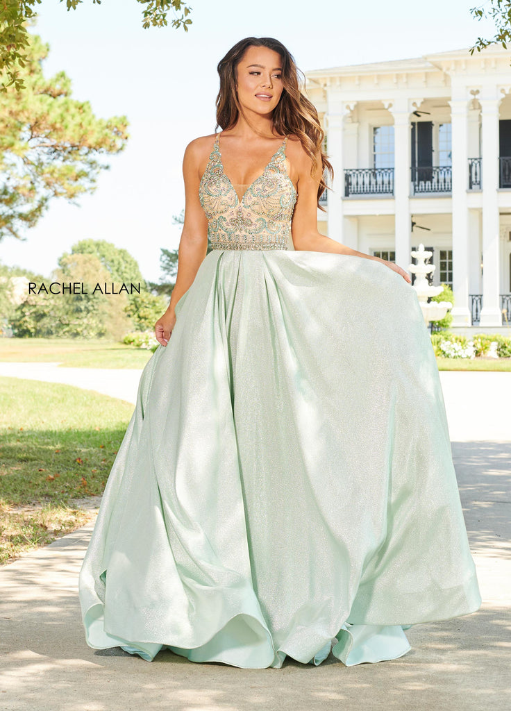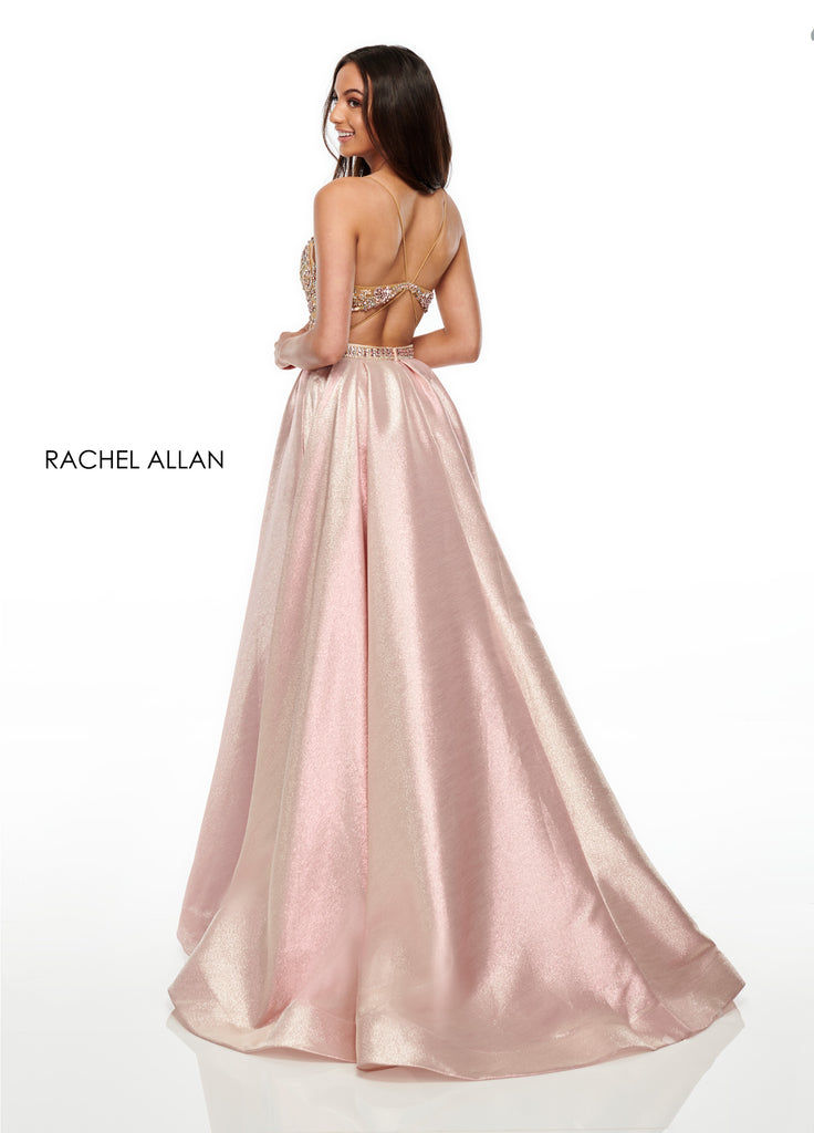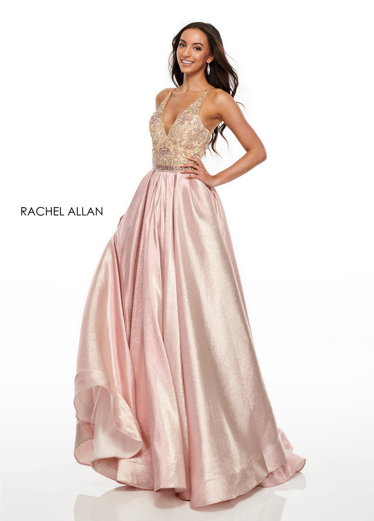 A gorgeous princess gown with a beaded bodice, hidden pockets and a shimmering glitter ballgown skirt.