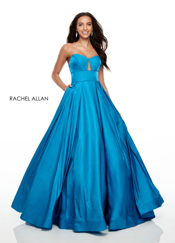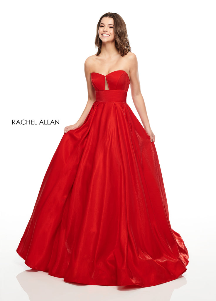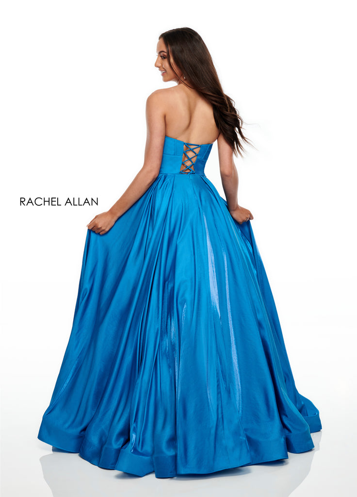 This glamorous ballgown from Rachel Allan features a lace up back for comfort and has a removable over-sized bow for extra glam. We adore!