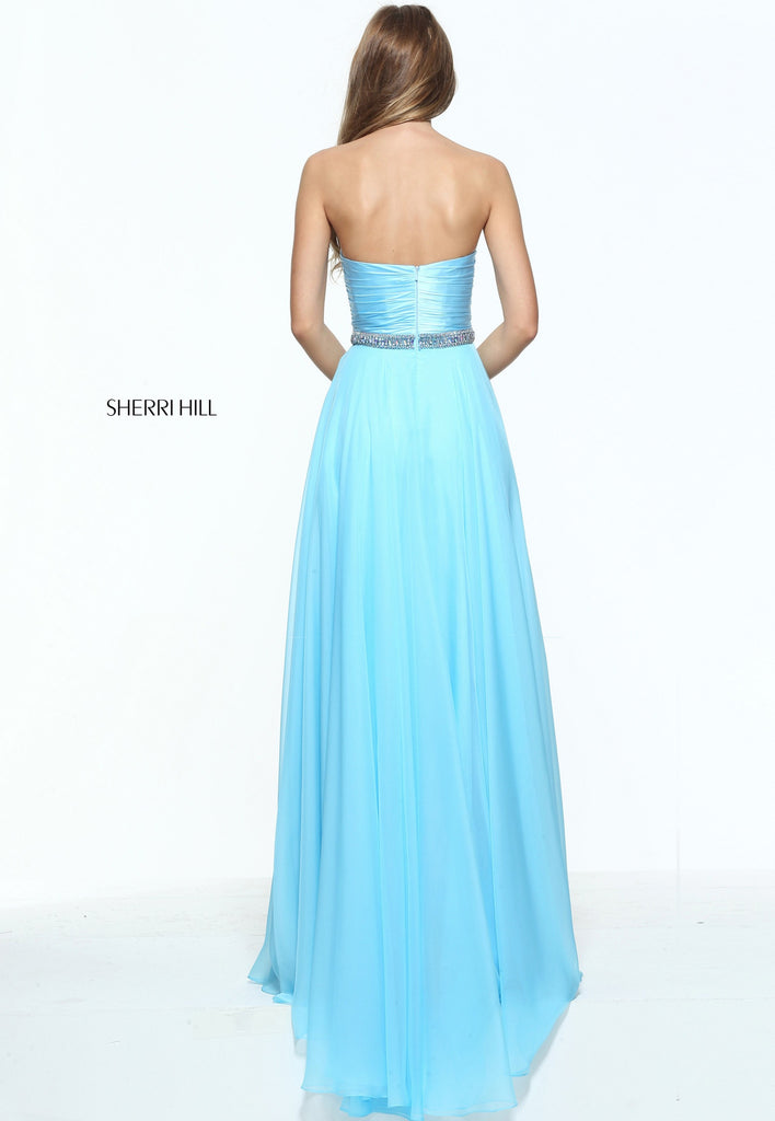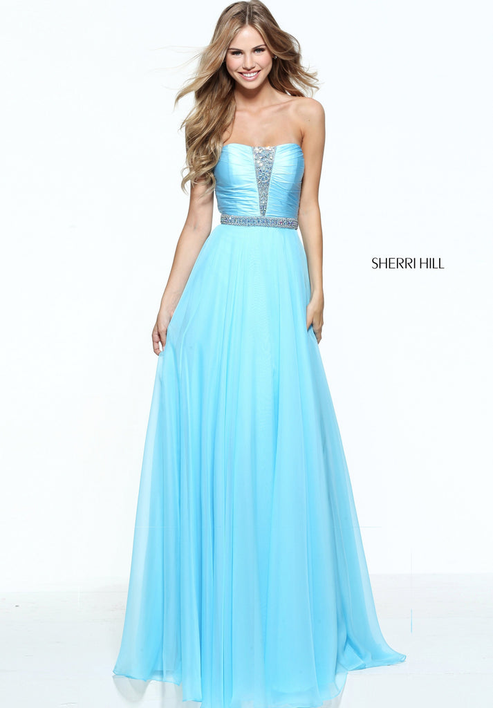This elegant gown is perfect for everyone who is an inner princess! Featuring a gathered bodice with gorgeous embellishment, a flowing skirt and small train, its definitely prom perfect!