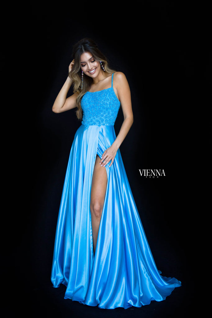 Dress to impress! This wrap skirt dress is perfect for summer proms! Featuring a beaded bodice and spaghetti straps, handy pockets, and a cut out back, this dress will definitely stand out from the crowd in it's beautiful ice cream hues!